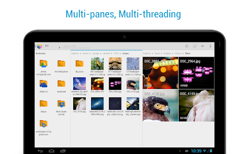 This is the first multi-panel file explorer on Android OS. It features "Drag & drop anywhere" to bring the best user experience.