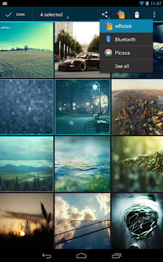Integration!, we allow you to use any application you like to load wallpapers: Gallery (with Picasa support), any file explorer, or even Google drive and Dropbox!
